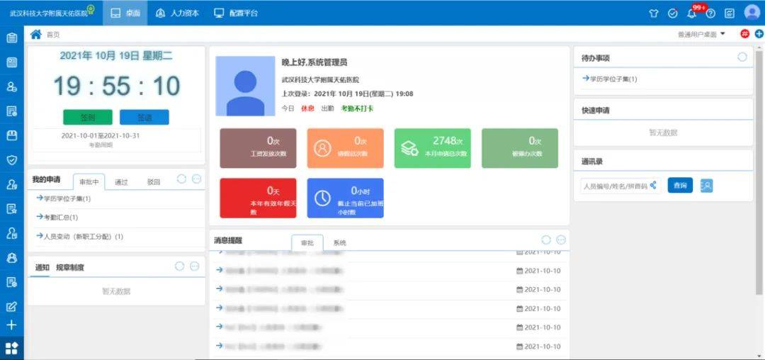 基于医院人力资源管理发展现状与明晰系统建设目标的基础上,朗新天霁携手武汉科技大学附属天佑医院共建人力资源数字化管理平台。