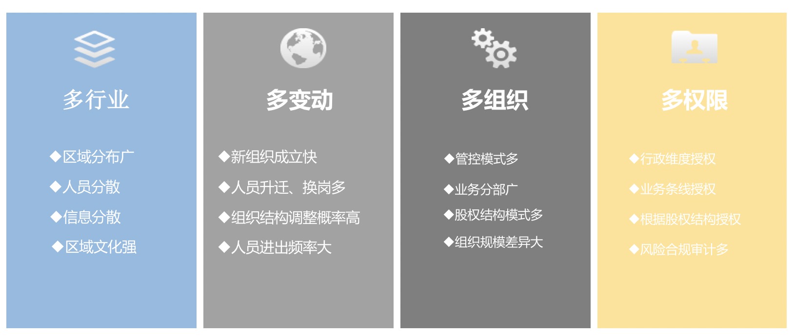 集团层面:集团人事业务整体管控,组织、岗位体系、编制等,以流程驱动